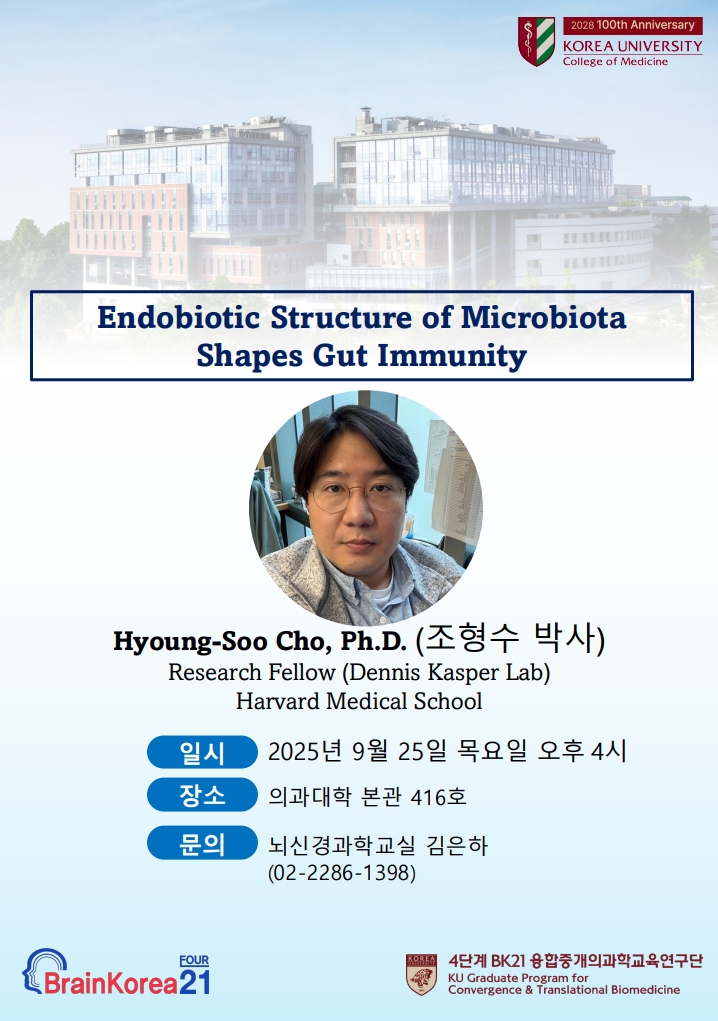 | 제목 | [특별세미나] 9/25일(목)) 오후 4시_Hyoung-Soo Cho, Ph.D. / Research Fellow_Harvard Medical School |